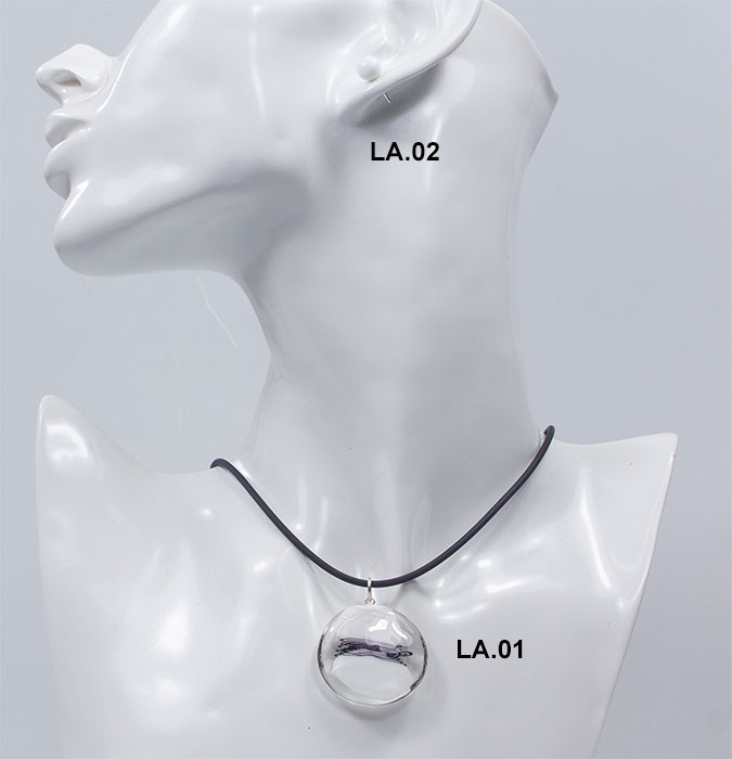 LA. 01 Glas Amulett Unikat Weiß, schwarzer Faden - Kautschukband 2 mm schwarz Juwelier Qualität Ringverschluss 925er Silber Handarbeit Stück Preis auf Anfrage