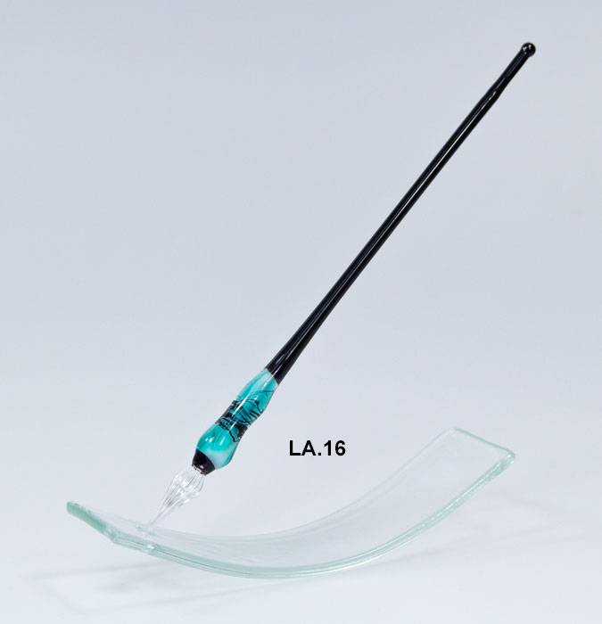 LA. 16 Glasschreiber Unikat Grün / Türkis, schwarzer Faden Farben Handarbeit mit Tintenglas Stück Preis auf Anfrage