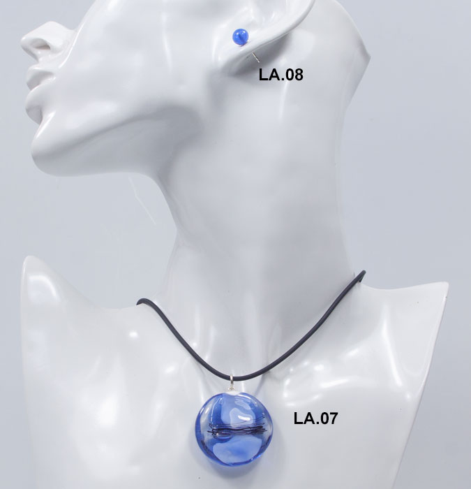 LA. 08 Glas Ohrstecker Uni, Blau 925er Silber Handgearbeitete Glasperle Paar Preis auf Anfrage